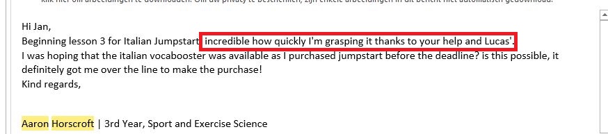 ‘I’m beginning lesson 3 for Italian Jumpstart, incredible how quickly I’m grasping it thanks to your help and Lucas!’