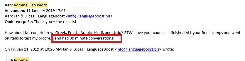 ”I have admired Jan and Lucas for several years, and I definitely learned a lot about how to acquire a language more effectively with them. I have also used LanguageBoost and it’s definitely one of the best systems out there to start out learning a new language, because it teaches you exactly what you need to know in the beginning, following a well-structured and intelligent method.”